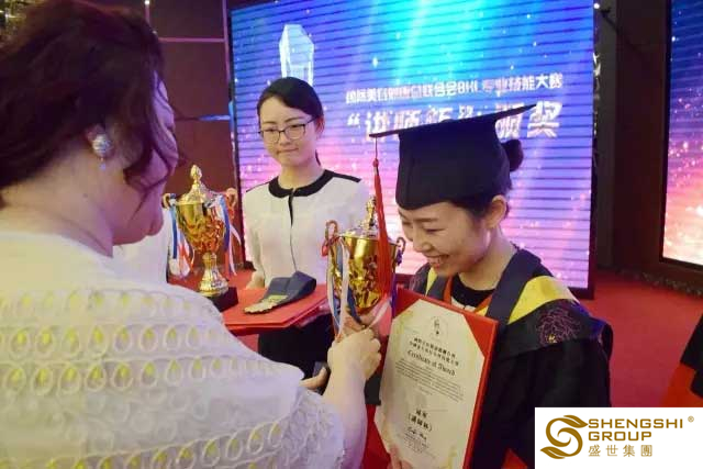 今天,是一個收獲榮譽的日子;從奧林匹克講師杯、到專業技能匠心杯,到第一季度業績戰神杯,盛世榮譽表彰一波接著一波。盛世集團特邀香港美容美發協會會長彭玉玲女士,為此次奧林匹克專業技能大賽獲獎者頒獎,并給予加持勉勵。