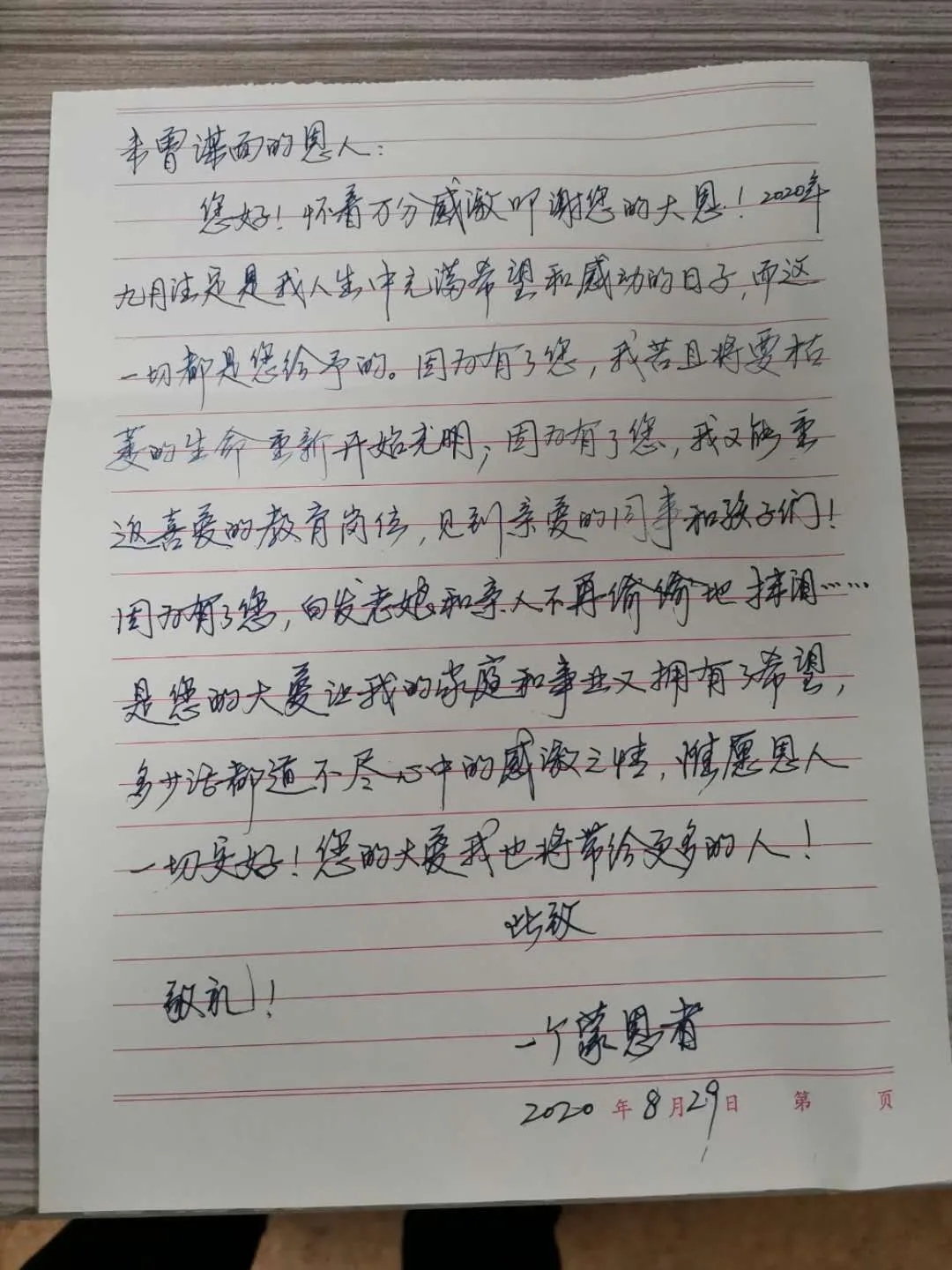 “通過(guò)這封飽含深情的信,我得知我的‘有緣人’,是一名老師。在我準(zhǔn)備捐獻(xiàn)之前,他還一直堅(jiān)守在工作崗位上。”杜咪動(dòng)情地說(shuō),“我是一名退伍軍人,在部隊(duì)中,國(guó)家教會(huì)了我要以人民的利益為中心,要以人民的安全為使命;在盛世中,董事長(zhǎng)教導(dǎo)了我,是社會(huì)上的人民給予了我們一切,我們需要常懷感恩之心,要以大愛(ài)之心承載社會(huì)責(zé)任。為此我有義務(wù),也有責(zé)任回報(bào)社會(huì)。”