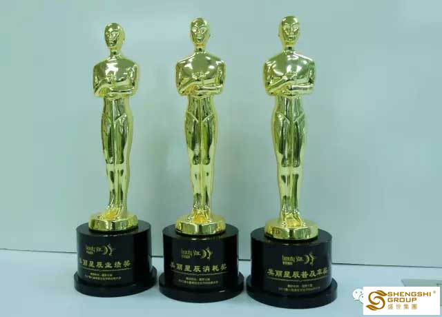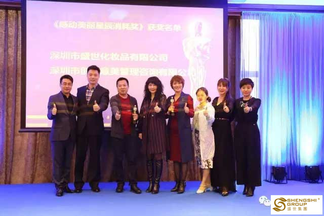 3月23日,盛世集團董事長王俊華女士攜盛世高管,一同出席2017年度美麗星辰第七屆美容節供應商大會,喜得三尊小金人!——感動美麗星辰業績獎、感動美麗星辰消耗獎、美麗星辰普及率獎。